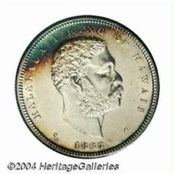 Kalakaua I 1/2 Dollar 1883, KM6, AU-UNC, with virtually no trace of circulation wear. This coin has been lightly dipped and is now toning along the edge. The fields display typical small marks and there is one short scratch on the king's neck. This denomination is very scarce in this condition. Important notice: Heritage usually auctions material at the rate of 200-250 lots per hour. On some occasions eBay Live bid software or the Internet may not be able to keep up with the pace of the auction. We recommend placing a realistic absentee bid now as insurance to avoid disappointment. Occasionally the auctioneer may eliminate or reject an eBay Live bid, and the auctioneer may also reopen a lot after the close of the eBay live bidding (usually because we missed an audience bid), and may reject your bid even if it shows you as the winning bidder. By bidding via eBay Live, you agree that Heritage may award the lot to another bidder at its sole discretion under the circumstances described above or any other reasonable circumstances. Also please note that all Heritage lots purchased through eBay Live carry a 20% Buyer's Premium. Please make sure you read the Terms and Conditions before you bid.