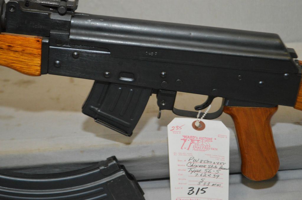 Kalashnikov ( Chinese State Arsenals ) Model Type 56 - 5 7.62 x 39 Cal 5 Shot Mag Fed Semi Auto Rifle w/ 533 mm bbl [ blued finish, wooden pistol grip forend & butt stock, w/ sling swivels, bipod & cleaning rod, c/w extra 5 shot pinned mag ] Ser # PW85000455 Prohib Class 12 -5 Cert # 5675511 Expect Delays in Transfer