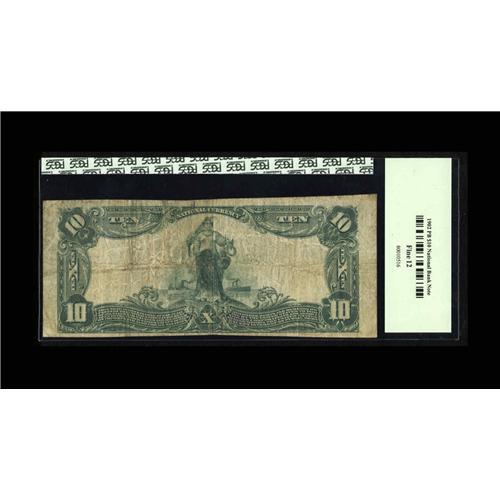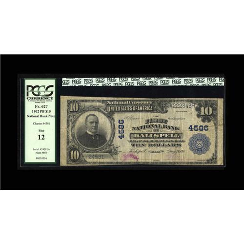 <B>Kalispell, MT</B></I> - $10 1902 Plain Back Fr. 627 <B>The First NB</B></I> Ch. # 4586<BR>The signatures have faded on this $10 Plain Back from the first bank located here to receive its Federal charter. Overall, a still attractive <B>PCGS Fine 12.</B></I>