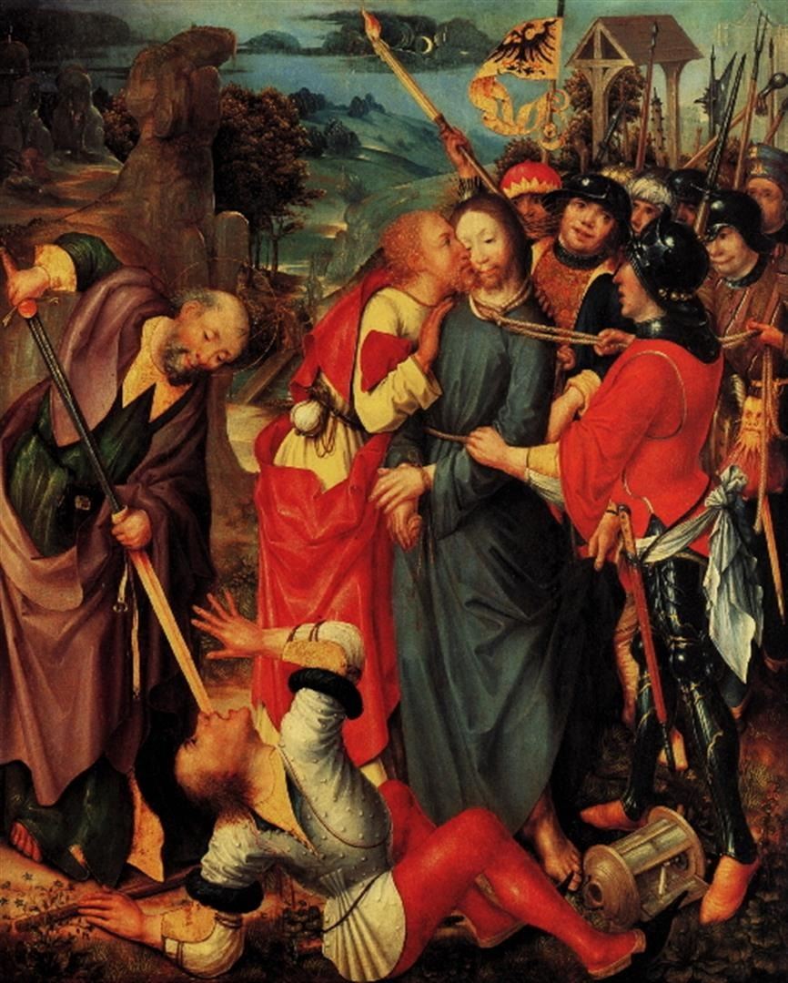 Artist: Jan Joest van Kalkar - Title: Capture of Christ - Medium: Fine Art Giclee on Canvas - Image Size: Approximately 20 inches x 16 inches - Unframed on Unstretched Canvas - Biography: Jan Joest, also known as Jan Joest van Kalkar was practically unknown until 1874, when two men, Canon Wolff and Dr. Eisenmann, established his identity. - Not much of Joest's life is known beyond his paintings. He was the son of Heinrich Joest and Katharina Baegert, the sister of Derick Baegert, who was probably the first teacher of Joest. His greatest work, scenes of the life of Christ, were made between 1505 and 1508 on the high altar in St. Nicholai's Church in his hometown of Kalkar.