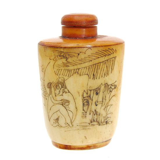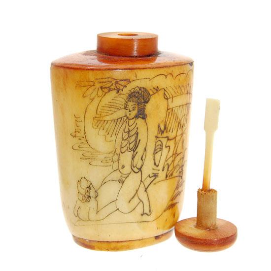 Excellent hand-carved images on bone piece, 3"