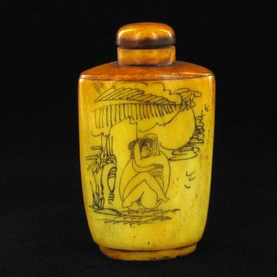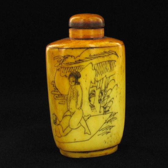 Excellent hand-carved images on bone piece, 3"