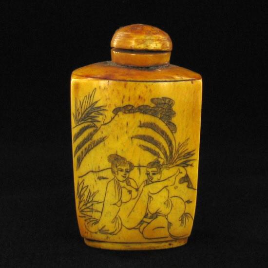 Excellent hand-carved images on bone piece, 3"