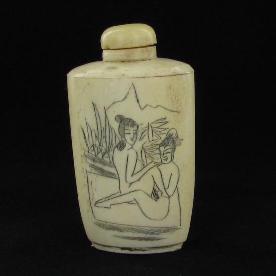 Excellent hand-carved images on bone piece, 3"