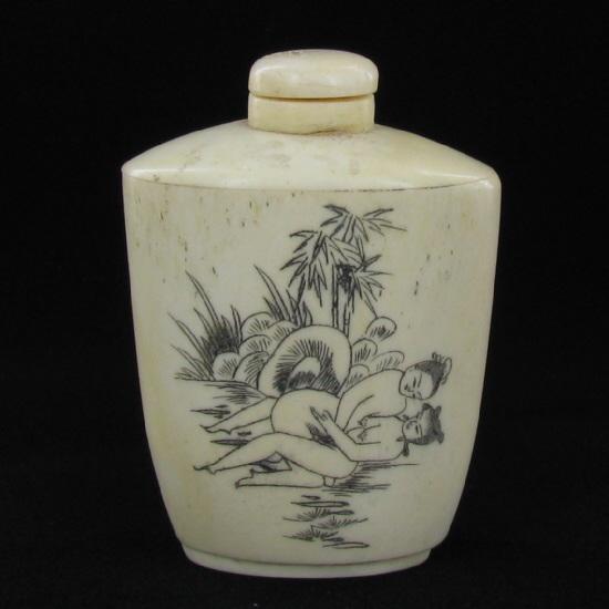 Excellent hand-carved images on bone piece, 3"