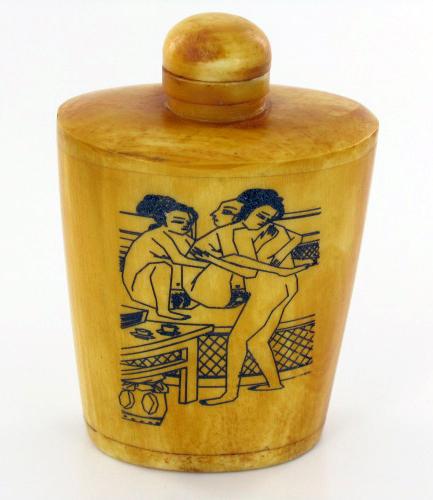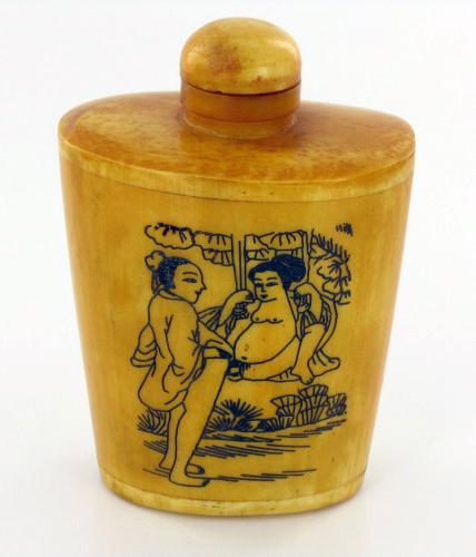 Excellent hand-carved images on bone piece; 3"