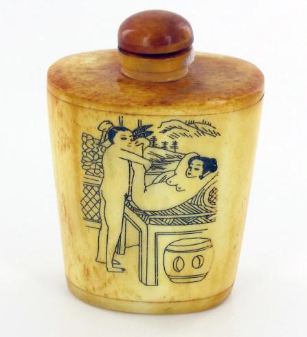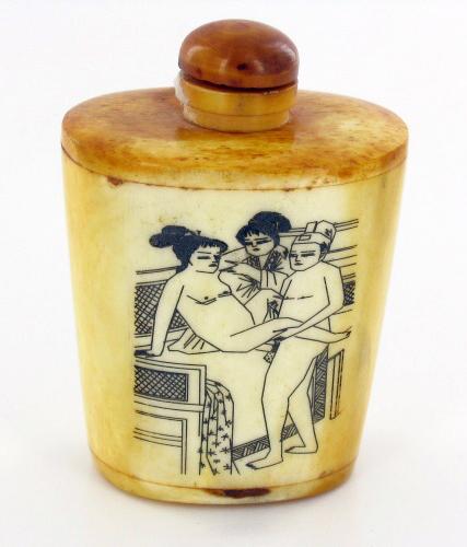 Excellent hand-carved images on bone piece; 3"