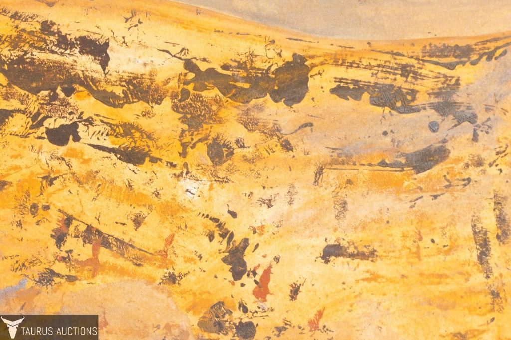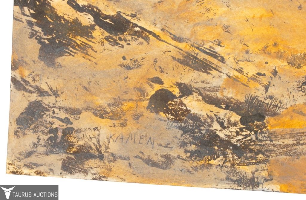 Item/Description: Original abstract landscape painting in yellow and black. Signed lower left: Kamen.