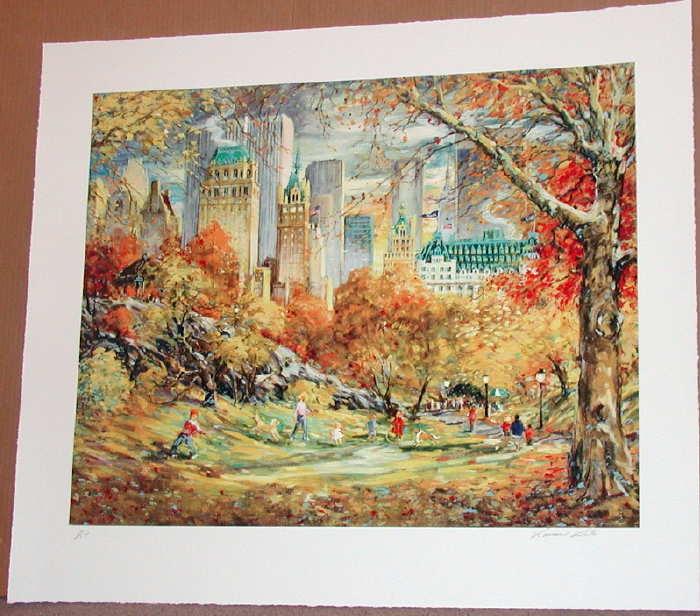 A typical landscape of Central Park by the popular impressionist artist who specializes in cityscapes worldwide. Large 30x35 in. format on paper, unframed, signed in pencil Artist’s Proof aside from the edition of 300. Domestic shipping-$20, International depending upon location.