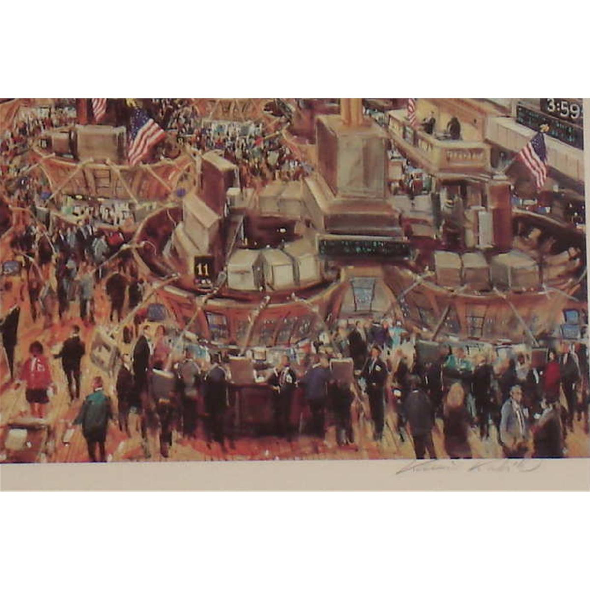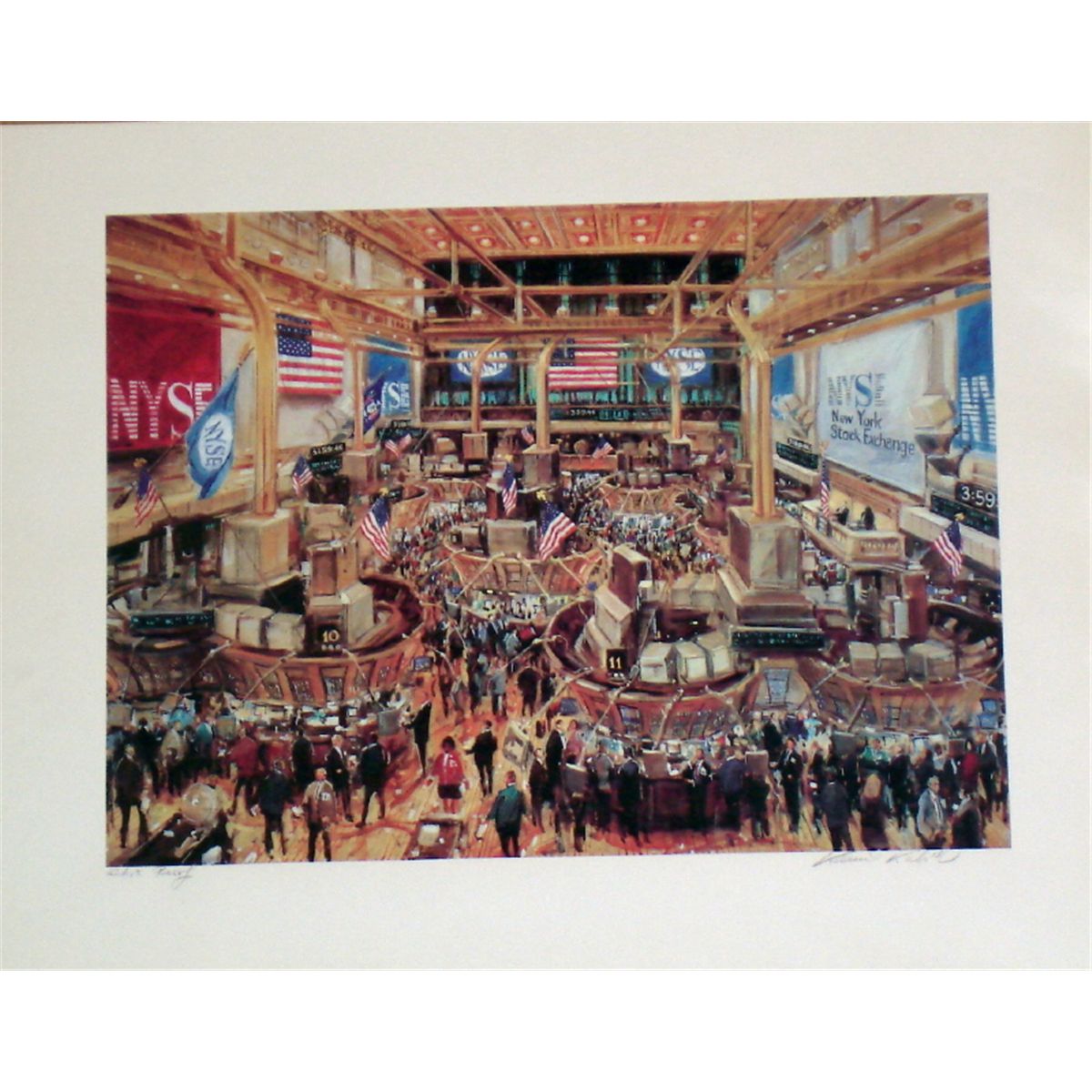 A scene of the hectic floor of the NY Stock Exchange by the well known impressionist cityscape artist from the sold out 1999 edition. Large 31x36 in. serigraph, signed.in pencil Artist’s Proof aside from the edition of 300 examples. Domestic shipping $25, International depends upon location.