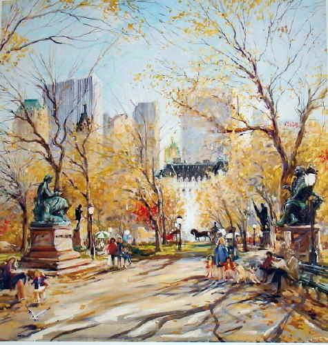 Another beautiful scene of Central Park’s famous Literary Walk, more popularly known as Poet’s Walk, by the popular impressionist artist who specializes in cityscapes worldwide. Large format 31x29 in. giclee on canvas, signed by the artist in an edition of 99 examples Can be framed without glass like a painting. Domestic shipping-$25, International depending upon location.
