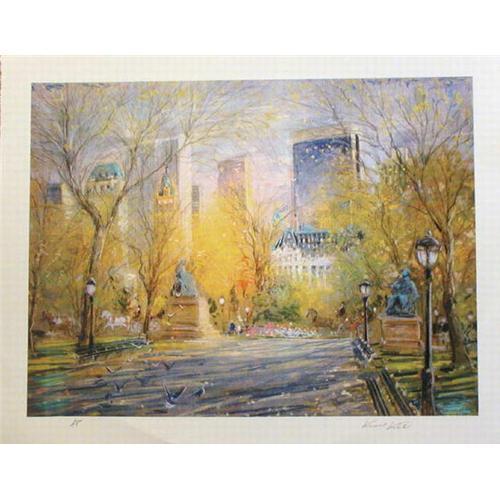 A beautiful landscape of Central Park?s famous Poets Walk by the popular impressionist artist who specializes in cityscapes worldwide. Large 38x43 in. format on paper, unframed, signed in pencil Artist?s Proof aside from the edition of 20. Domestic shipping-$25, International depending upon location.
