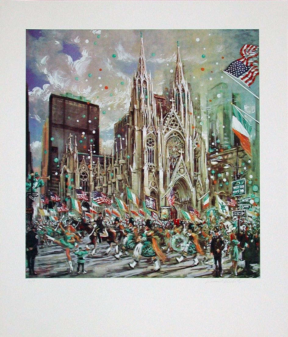 A beautiful scene of the famous cathedral in New York during the St. Patrick’s Day Parade by the popular impressionist artist who specializes in cityscapes worldwide. 33”X28”on paper, unframed, signed in pencil Artist’s Proof aside from the edition of 300. Domestic shipping-$20, International depending upon location.