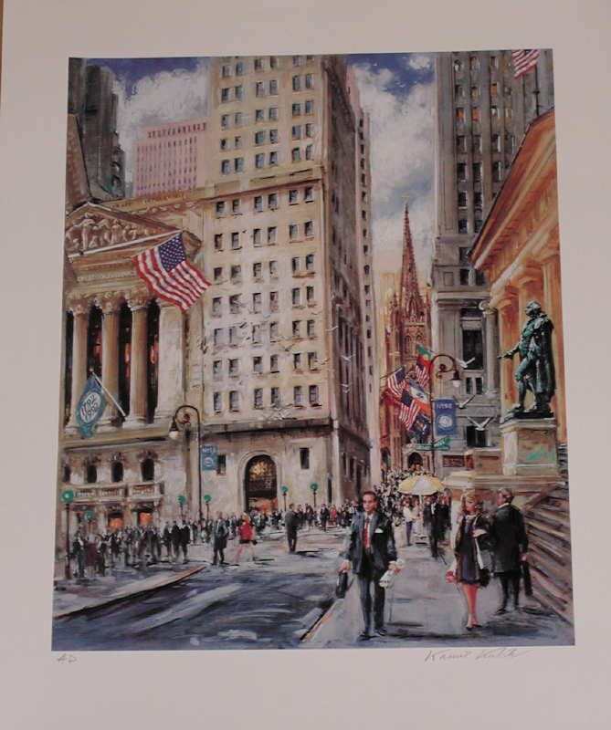A scene of the Fijnancial Center by the well known impressionist cityscape artist. 32”x25” Arches paper, signed.in pencil Artist’s Proof aside from the edition of 200. A Certificate of Authenticity will accompany this work. Domestic shipping $20, International depends upon location.