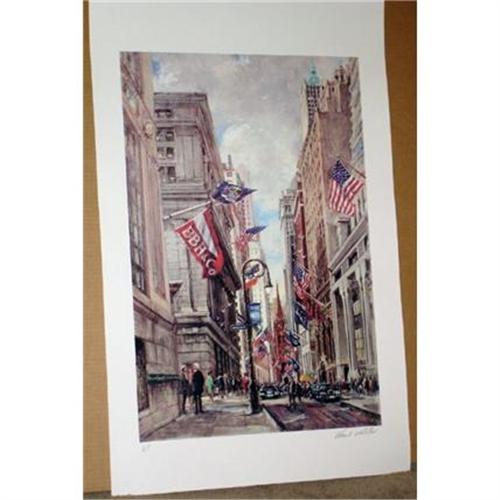 A scene of the Financial Center by the well known impressionist cityscape artist. 32x22 in. Arches paper, unframed, signed in pencil Artist?s Proof aside from the numbered edition of 300. Released in 1998. Domestic shipping $20, International depending upon location.