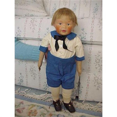 This lovely boy appears to be all original. He is reasonably clean-slight age fade to clothes.. He is marked correctly under his wig-see pix.The face has good paint. I see one very small cheek rub and his face is a little soiled. Make an offer if not in an auction.