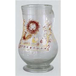 Németország, 1792, színtelen hutaüveg, zománcfestett díszítéssel, m: 21 cm