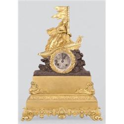 francia, 1850 körül, aranyozott, patinázott bronz tokban, 1/2 -es ütos szerkezet, muködoképes, m: 40 cm, muködoképes