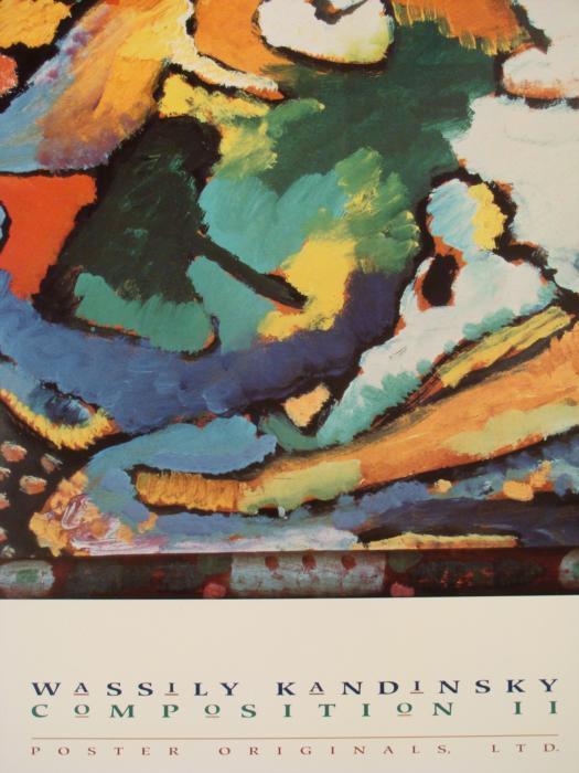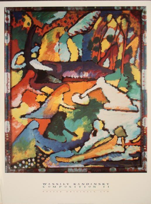 Kandinsky's fantastic colors and shapes really stand out in this large size poster.Artist: Wassily KandinskyTitle: Composition II Medium: Print on poster paperSheet size: 3 x 4 feet Publisher: Bruce McGaw GraphicsCondition: very good; normal light wrinkles, surface wear at the lower left corner