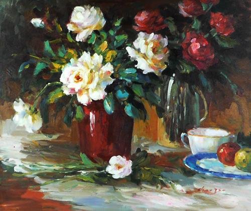 Kang Yon Cho (1953 - ) Oil on Canvas Still Life Signed lower right 20" x 24"