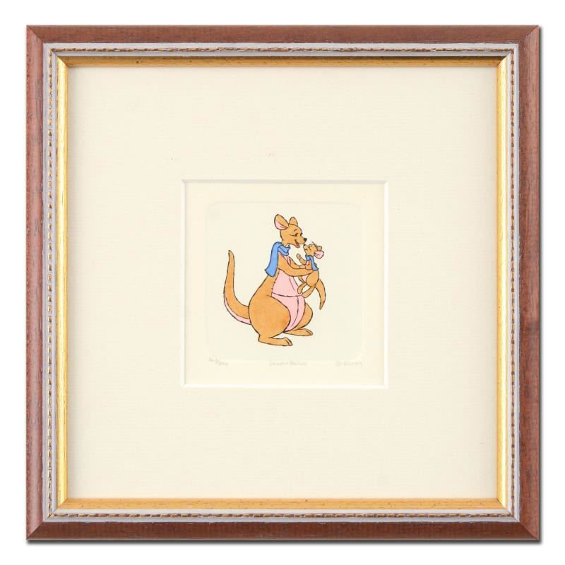 "Kanga" is a limited edition etching on paper with hand-tinted coloring from Disney, numbered out of 500. This piece comes framed. Measures approx. 8.5" x 8.5" (with frame), 2" x 2" (image).