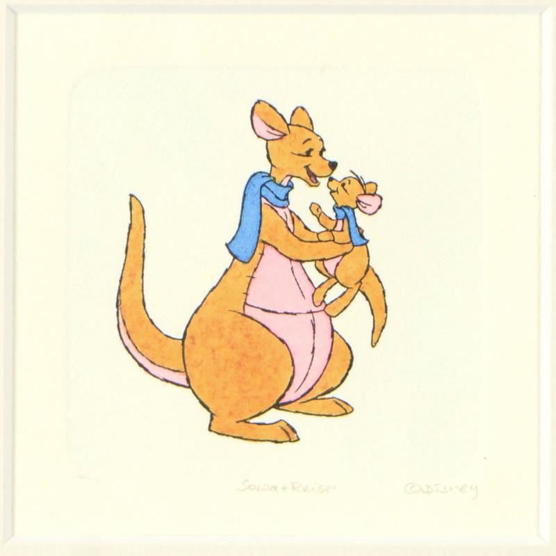 "Kanga" is a limited edition etching on paper with hand-tinted coloring from Disney, numbered out of 500. This piece comes framed. Measures approx. 8.5" x 8.5" (with frame), 2" x 2" (image).