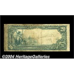 Kankakee, IL - $20 1902 Plain Back Fr. 653 The City NB Ch. #(M) 4342Although this bank is quite common in the 1929 series, there is a different story altogether with respect to large. In the $20 Plain Backs this Very Fine example is a new addition to the census, bringing the total of this type and denomination which have survived to satisfy the collecting lust to a scant two. Moreover, this example is the type printed prior to September, 1925 and bears both a treasury and bank serial number. The other survivor of this denomination and major design type was printed after September 1925 and bears the bank serial number twice, making each the sole known example of its specific type, variety, and denomination. While the margin just touches at bottom, and there is a light overlay of circulation evidence, the officers' signatures are dark and vivid. How long it will be before another of this variety is made available to the community is pure speculation. <BR><BR><B>Important notice:</B> Heritage usually auctions material at the rate of 200-250 lots per hour. On some occasions eBay Live bid software or the Internet may not be able to keep up with the pace of the auction. We recommend placing a realistic absentee bid now as insurance to avoid disappointment. Occasionally the auctioneer may eliminate or reject an eBay Live bid, and the auctioneer may also reopen a lot after the close of the eBay live bidding (usually because we missed an audience bid), and may reject your bid even if it shows you as the winning bidder. By bidding via eBay Live, you agree that Heritage may award the lot to another bidder at its sole discretion under the circumstances described above or any other reasonable circumstances. Since eBay bids are not shown to us until we open the lot on the floor, we treat those bids just like floor bids. In most cases the floor responds before the eBay bid is presented to us, due to Internet lag time, so for consistency we have made it a policy that floor bids are always considered first over tie eBay live bids. Also please note that all Heritage lots purchased through eBay Live carry a 20% Buyer's Premium. Please make sure you read the Terms and Conditions before you bid. <BR><BR><B>IMPORTANT ANNOUNCEMENT ABOUT RESERVES:</B> Heritage now divulges all reserves on its web site 7 days before every auction. If you want to know whether the reserve on this lot has been met, and if not, what the reserve amount is, please visit this lot page on the HeritageCoin.com web site, or email: bid@HeritageGalleries.com