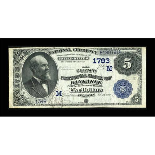<B>Kankakee, IL</B></I> - $5 1882 Date Back Fr. 532 <B>The First NB</B></I> Ch. # (M)1793<BR> This piece boasts a pleasing overall eye appeal with bright paper and a bold overprint. The back shows some wallet staining. <B>Very Fine.</B></I><BR><BR><b>Shipping:</b> Coins & Currency (<a target="_blank" href="http://www.heritageauctions.com/common/shipping.php">view shipping information</a>)