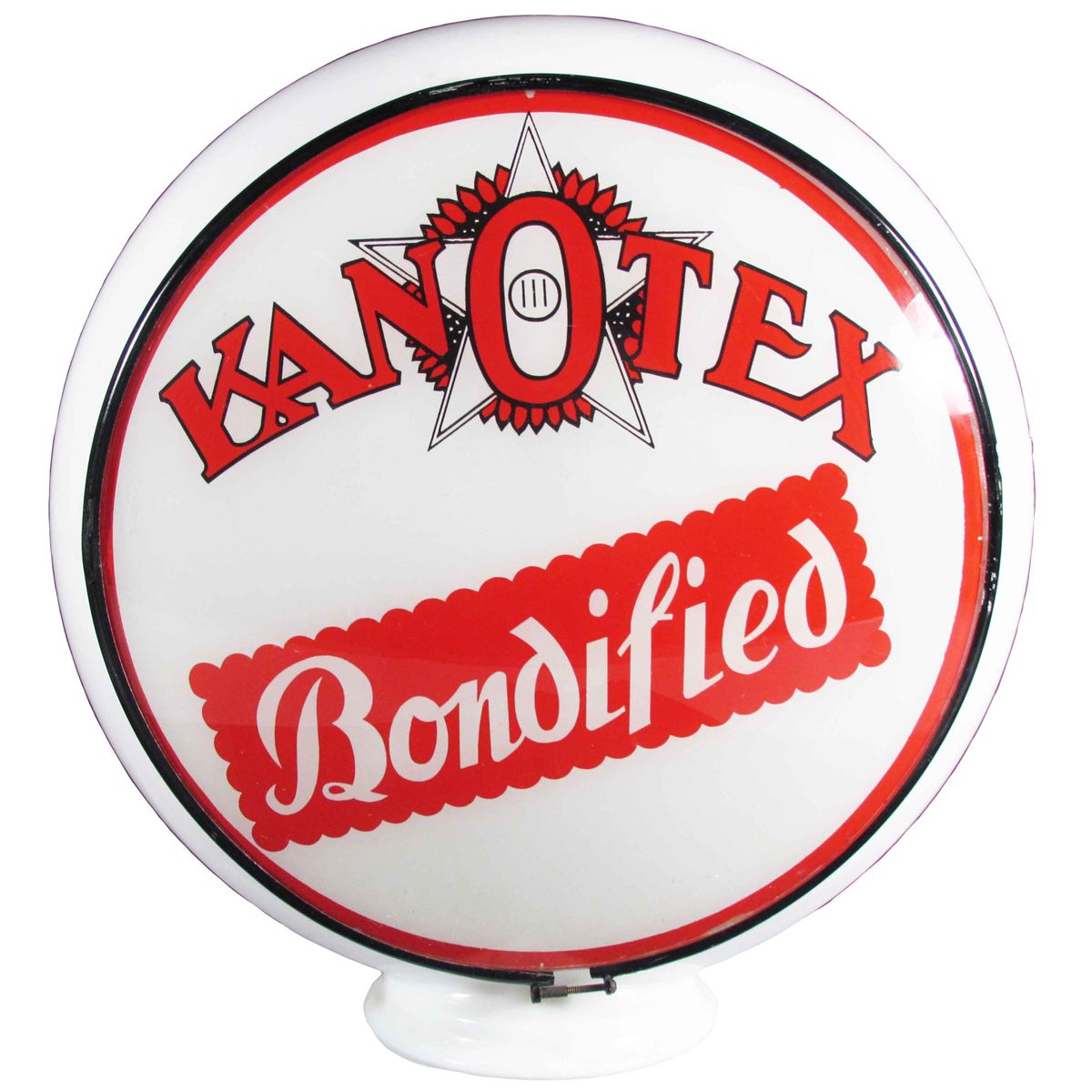 Kanotex Gas Globe. Milk glass collar and inserts. A couple of tiny chips around base otherwise very good condition. 14 inch diameter.
