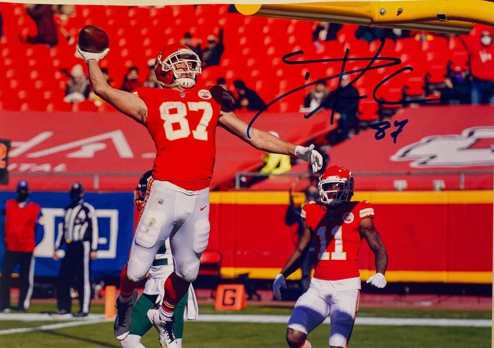 Kansas City Chiefs Travis Kelce facsimile signed photo. 8x10 inches. This item is a reprint of an original autograph