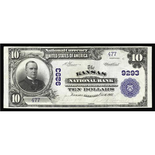 <B>Kansas, IL</B></I> - $10 1902 Plain Back Fr. 626 <B>The Farmers NB</B></I> Ch. # 9293<BR>The signatures remain, though they are a touch faded. The paper surfaces are purely original and the paper waves created by the printed process are as fresh as ever. There is a touch of handling that prevents the note from going higher than <B>Crisp Uncirculated.</B></I>