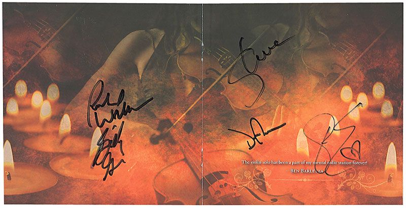 Signed book: Dust in the Wind: 35th Anniversary. Nashville, Tennessee: Way Publishing, 2011. Hardcover, 6.25 x 6.25. Signed in the gatefold in black felt tip by Phil Ehart, Steve Walsh, Richard Williams, Billy Greer, and Dave Ragsdale. In very fine condition.