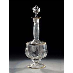 L. Moser & S”hne, Karlsbad, um 1900 Farbloses, optisch geblasenes, partiell facettiert geschliffenes Glas mit teils gebl„nktem Schnittdekor:  Bloten- und Blattwerk der Tulpe. Gravierte Binnenzeichnung. Goldstaffage. H. 31 cm (11353012) Abbildung Tafel 128