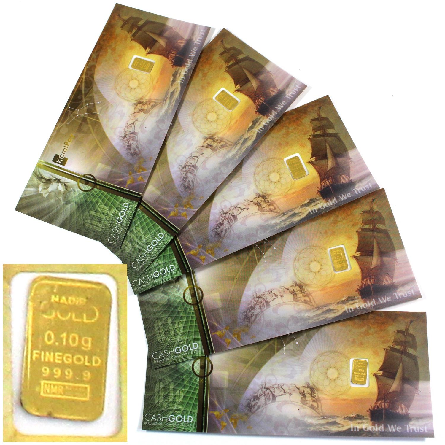Karat bars 1/10 Gram .9999 Fine Gold Pieces in Certificate Sleeves. 5pcs (TAX Exempt)