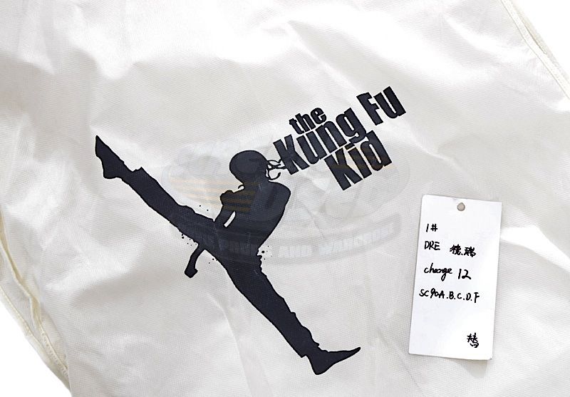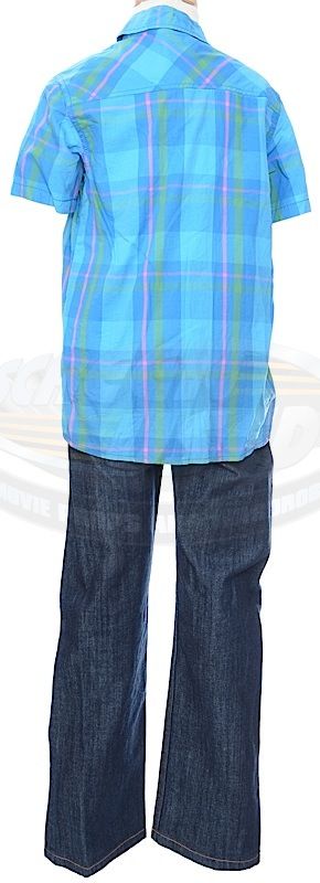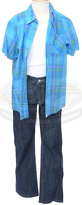 (Columbia Pictures, 2010) This outfit was acquired by the production for use by Jaden Smith as "Dre Parker". The outfit consists of a white sleevless undershirt, a short sleeve button down shirt, and a pair of jeans. Included with the outfit is a production used costume tag and custom costume bag that features the film's working title logo.