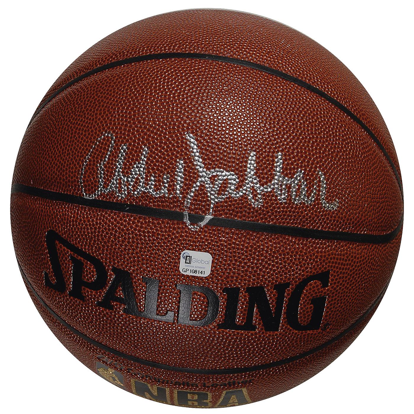 Official Spalding NBA basketball signed in silver ink on a side panel, “Abdul-Jabbar.” In very fine condition. Pre-certified Steve Grad/PSA/DNA and RRAuction COA.