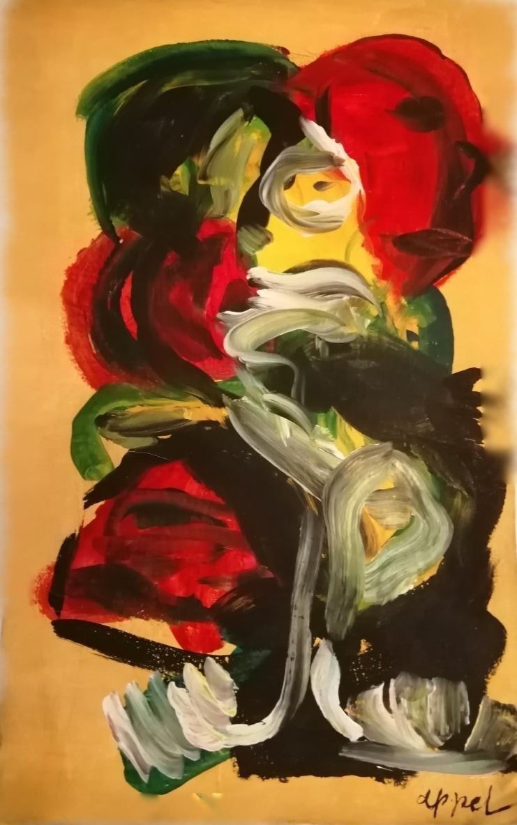 Large untitled painting by Appel, signed in the bottom right hand corner.