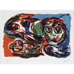 Karel Appel (Dutch b. 1921), Faces, Lithograph in color, 1966, signed Appel and dated 66 in p...