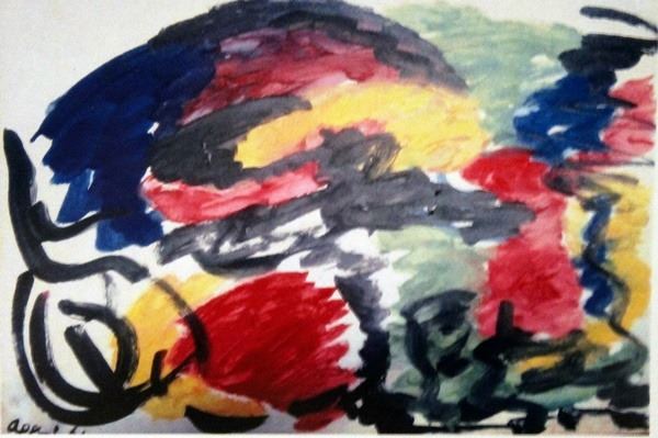Oil on paper in the manner of Karel Appel, "Improvisation", circa 1961, private collection, unframed dimensions are approximately 19x13. in the manner of Karel Appel, (born April 25, 1921, Amsterdam, Neth.—died May 3, 2006, Zürich, Switz.) Dutch painter of turbulent, colourful, and semiabstract compositions, who was a cofounder (1948) of the COBRA group of northern European Expressionists. He was also a noted sculptor and graphic artist. Appel first visited the United States in 1957, where he painted portraits of prominent jazz musicians, including Miles Davis and Dizzy Gillespie. His public works include a mural in the UNESCO building in Paris. His figurative sculptures in wood and metal share with the paintings a brutal, imaginative expressionism.