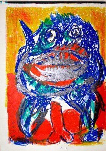 Karel Appel Original Lithograph - Medium: Original Lithograph. Published In 1964 By Kornfeld For 1 Cent Life (Along With A Limited Number Of Signed Proofs). Size: 16 1/4 X 11 1/2 Inches (Sheet) - Professionally Framed & Matted - Comes With Certificate - -