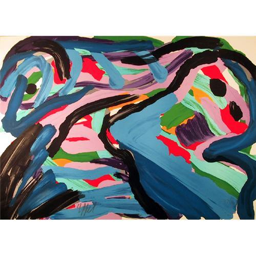 Dutch-born Karel Appel was part of the original CoBrA group (Copenhagen, Brussels, Amsterdam) whose works were characterized by bold expressionist forms and raw, intense colors. From 1940 to 1943 Appel studied at the Royal Academy of Fine Arts in Amsterdam. By 1951, when he painted a mural for the Stedelijk Museum in Amsterdam, he had earned an important place in the art world. His sculpture, paintings, and prints, thickly layered with color, have a childlike quality about them, but new possibilities present themselves at each viewing. He was awarded the UNESCO Prize at the 27th International Biennale in Venice, and the first prize at the Guggenheim International Exhibition in New York in 1960. He has exhibited in galleries worldwide and is represented in the collections of major museums in the United States, Canada, England, France, and Holland.