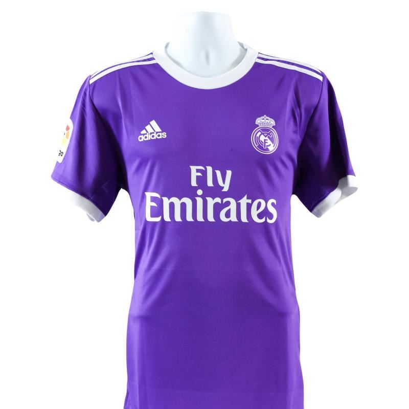 Karim Benzema Real Madrid 16/17 Jersey by Benzema, Karim. This is a replica Real Madrid 16/17 soccer Jersey autographed by Karim Benzema. This piece is presented with a Certificate of Authenticity from Beckett with a QR code and certification number. Measures approx. 30" x 28" (jersey).
