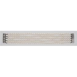 20. sz. utolsó harmada, 18 k fehér arany csattal, 5 soros tenyésztett gyöngysor, 150 db (6 mm-es) gyöngyszembol és 3 db (4 mm-es) a csaton, 4 db briliánssal, cca 0,08 ct, ACrSi, br. 47,1 g, nyelves záródással