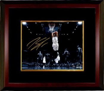 Throughout the 2014–15 season, Karl-Anthony Towns was often ranked behind Duke center Jahlil Okafor as a draft prospect. However, due to strong play in the NCAA Tournament, and a growing consensus that Towns was a better defensive player and had an opportunity to become a better offensive player as well, Towns overtook Okafor in most draft rankings. On June 25, 2015, Towns was selected by the Minnesota Timberwolves with the first overall pick in the 2015 NBA draft. Towns earned Western Conference Rookie of the Month honors in each of the season's six months, becoming the first Timberwolves player to do so. In addition, he became just the fifth unanimous NBA Rookie of the Year. He also earned NBA All-Rookie First Team honors. Karl-Anthony Towns has hand signed this Minnesota Timberwolves 8x10 Photo. Steiner Sports Hologram and Certificate of Authenticity. Custom Black Mat and Premium Mahogany Color Framed as shown.