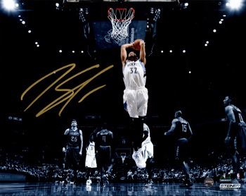 Throughout the 2014–15 season, Karl-Anthony Towns was often ranked behind Duke center Jahlil Okafor as a draft prospect. However, due to strong play in the NCAA Tournament, and a growing consensus that Towns was a better defensive player and had an opportunity to become a better offensive player as well, Towns overtook Okafor in most draft rankings. On June 25, 2015, Towns was selected by the Minnesota Timberwolves with the first overall pick in the 2015 NBA draft. Towns earned Western Conference Rookie of the Month honors in each of the season's six months, becoming the first Timberwolves player to do so. In addition, he became just the fifth unanimous NBA Rookie of the Year. He also earned NBA All-Rookie First Team honors. Karl-Anthony Towns has hand signed this Minnesota Timberwolves 8x10 Photo. Steiner Sports Hologram and Certificate of Authenticity.