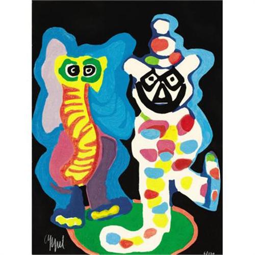 <B>KAREL APPEL (Dutch, 1921-2006)</B></I><BR><I>Ils sont de la famille</B></I>, 1978<BR>Color woodcut with carborundum<BR>30 x 22-1/4 inches (76.2 x 56.5 cm)<BR>Ed. 6/130<BR>Signed lower left: <I>Appel</B></I><BR>Inscribed lower right:<I> 6/130</B></I><BR> <BR>PROVENANCE:<BR>Kass, New York.<B>Condition Report:</B> Overall very good condition; not examined outside the frame<BR><BR><b>Shipping:</b> Requires 3rd Party Shipping (<a target="_blank" href="http://www.heritageauctions.com/common/shipping.php">view shipping information</a>)