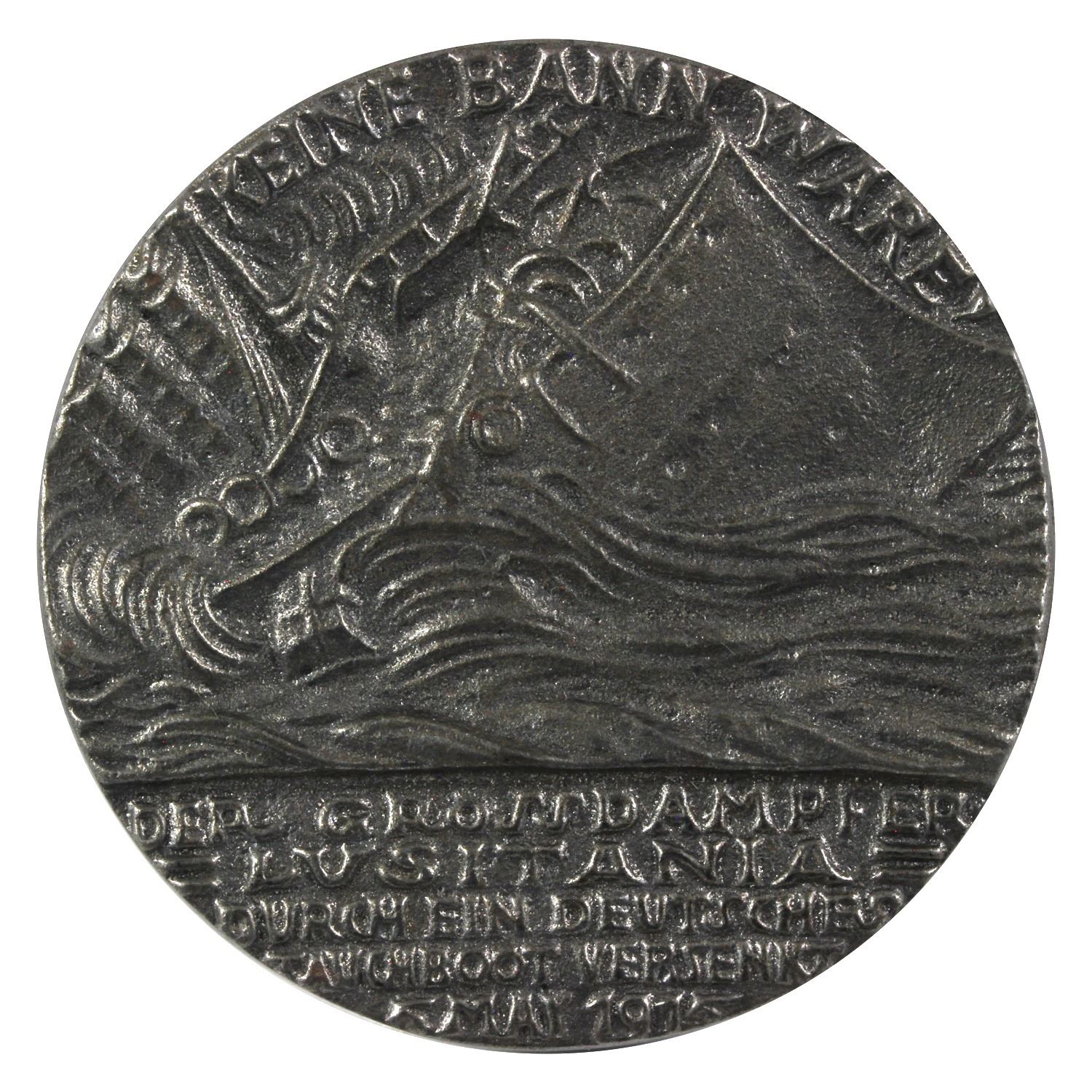 Karl Goetz 1915 Sinking of RMS Lusitania by German Submarine Disaster Exact Replica of the Original Medal. Comes in original box with information leaflet (Box is worn). 55mm diameter.
