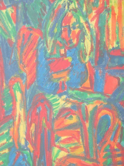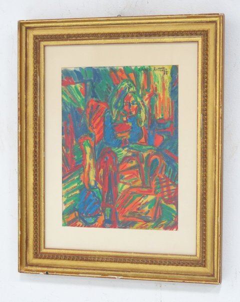 Colored crayons on paper. Signed upper right. Karl Schmidt-Rottluff, German (1884-1976). Approx. 13" x 10" sight, 22" x 18" framed. No guarantee of authenticity or provenance.
