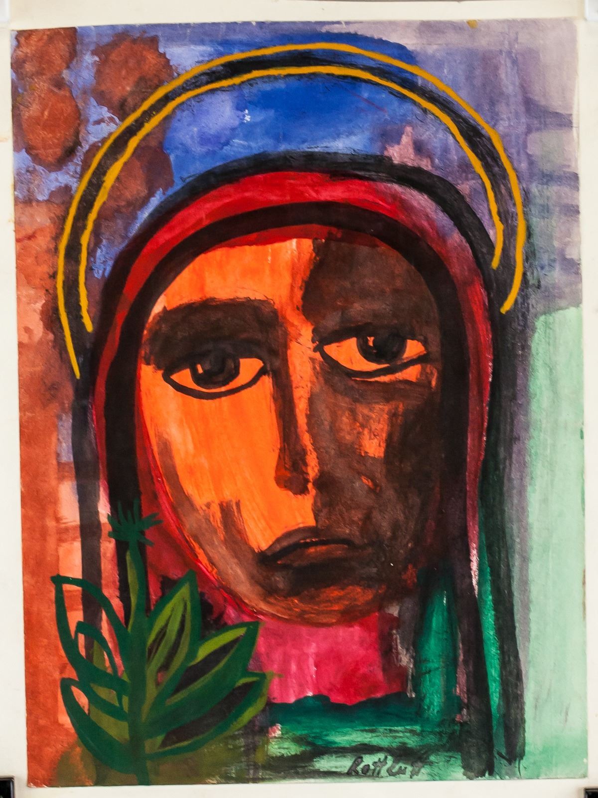 Mixed media on paper, unframed. Featuring portrait. Signed Ruttluff near bottom right. Attributed to Karl Schmidt-Rottluff (1884-1976, German). 32.5 x 25 cm (13 x 10 in). PROVENANCE: Southern Ontario estate