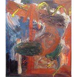 UNTITLED RED, 1988, oil painting on canvas, 71 x 61", signed and dated lower left, with a small 3" L shape tear in canvas lower left corner. $1500/2500